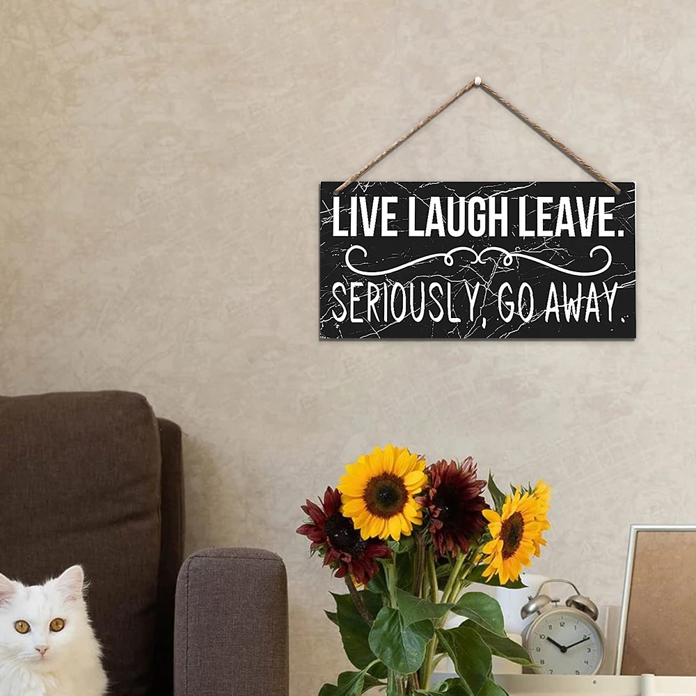 1pc Funny Slogan wooden hanging wall sign, "LIVE LAUGH LEAVE, SERIOUS, GO AWAY", slogan wood decoration for home door, hanging pla