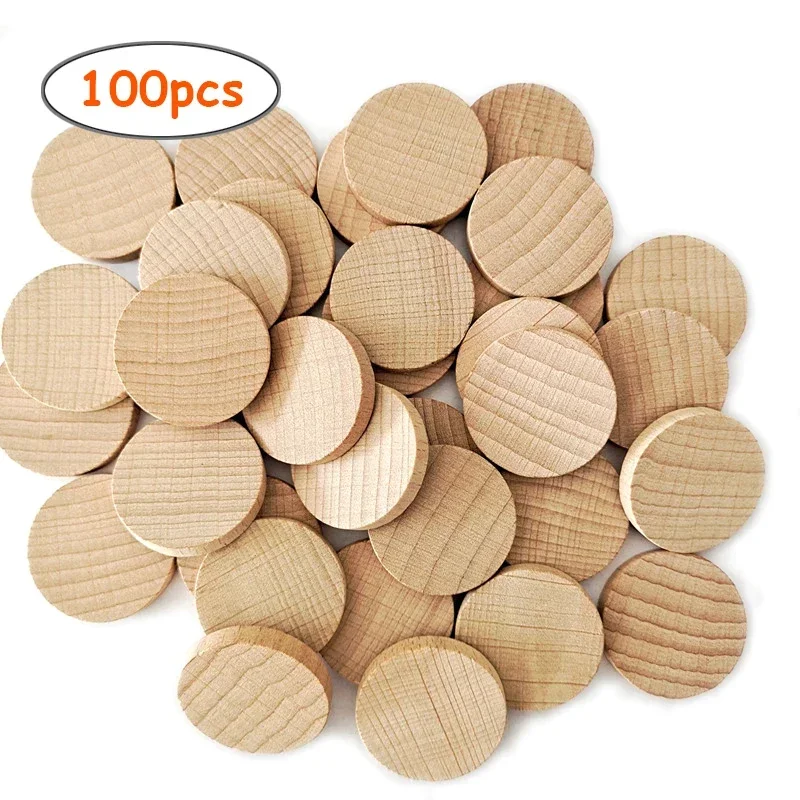 100pcs 3cm Unfinished Wood Circles Coins, Flat Unfinished Round Wood Discs for DIY Supplies Craft Project Painting Writing