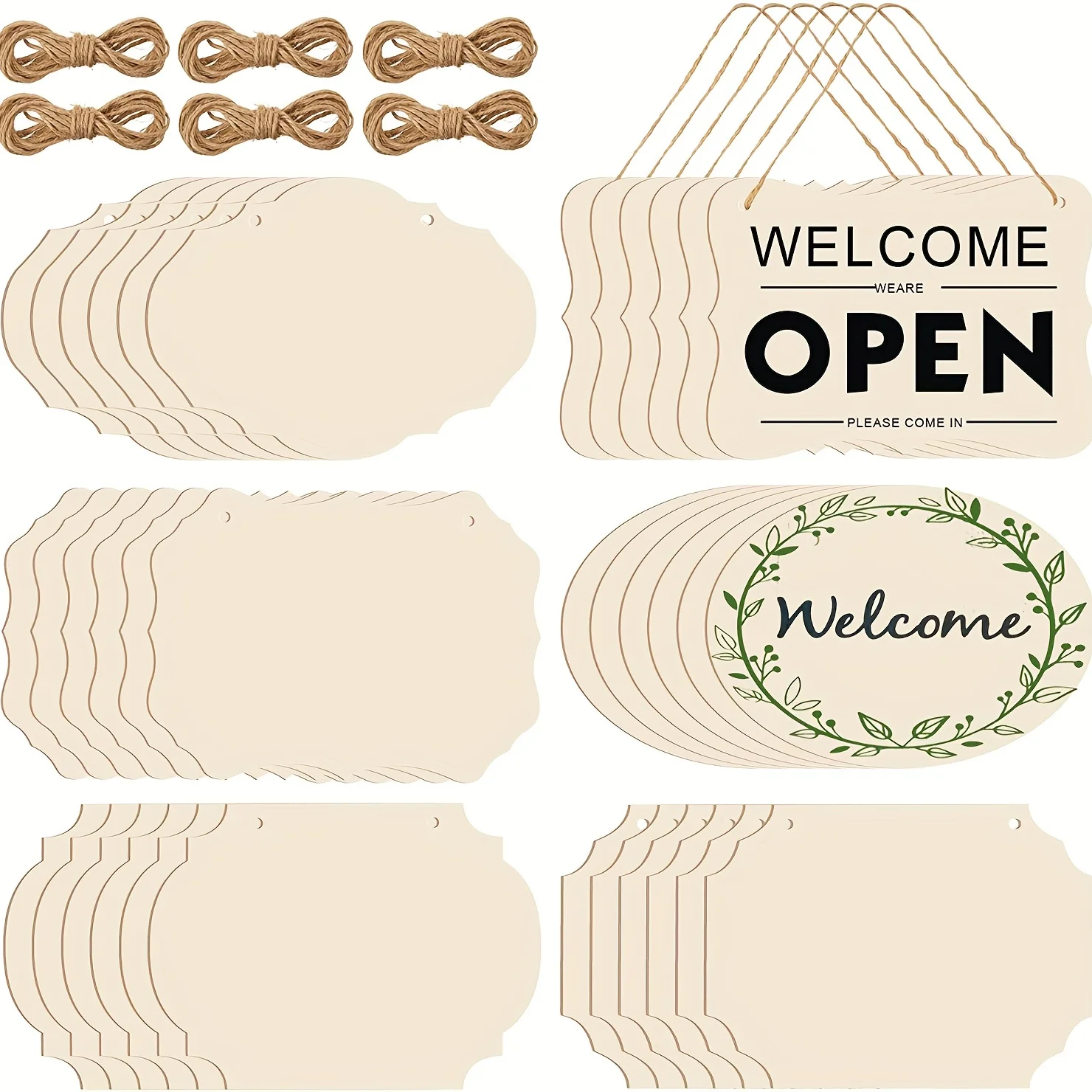 12Pcs Unfinished Wood Boards, 6 Shapes of Blank Wood Signs Wood Plaques with Hanging Ropes for Wood Burning DIY Crafts