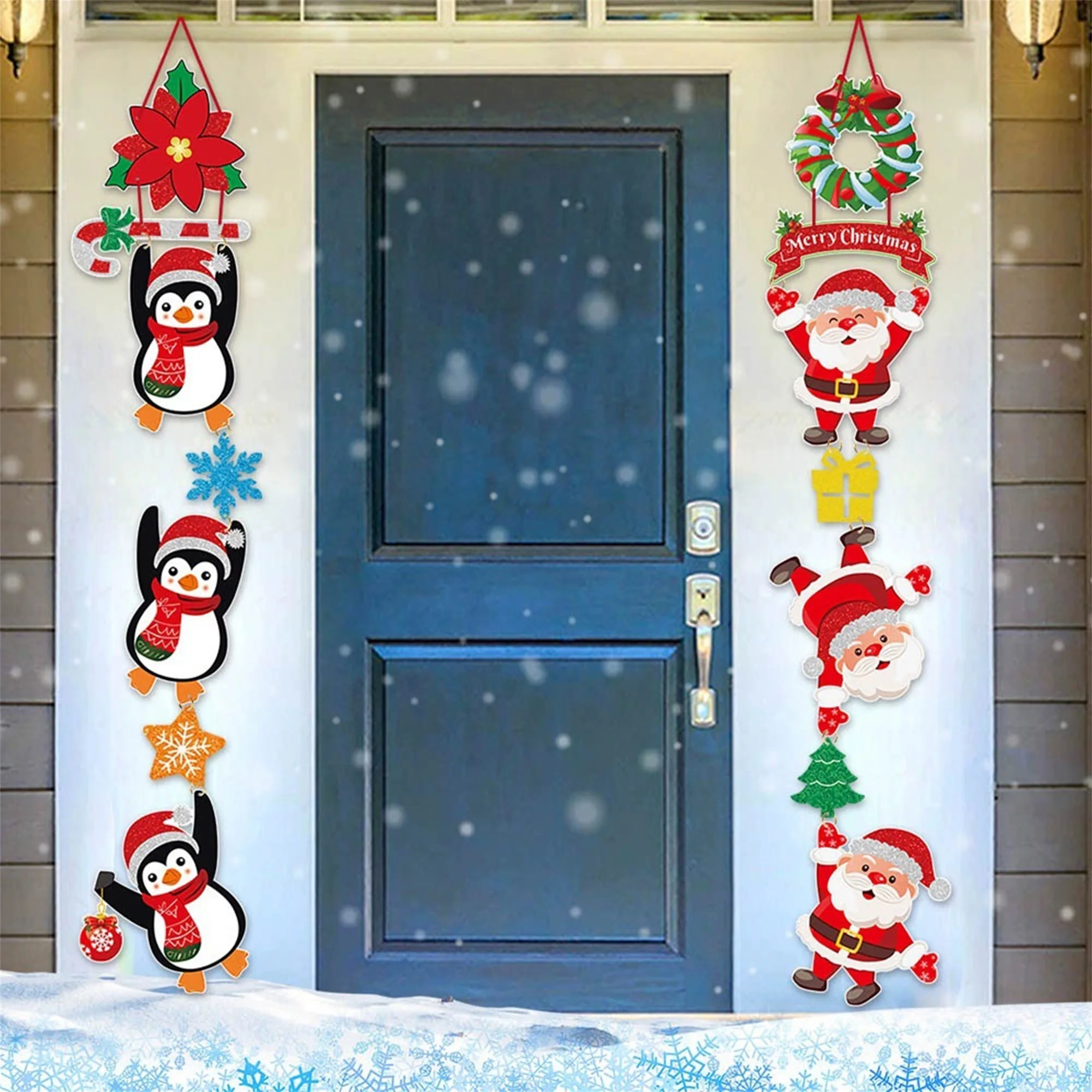 Festive Christmas Door Hanger Decorations with Santa Claus and Penguin Design - Vertical Hanging Paper Banner for Indoor and  Read more