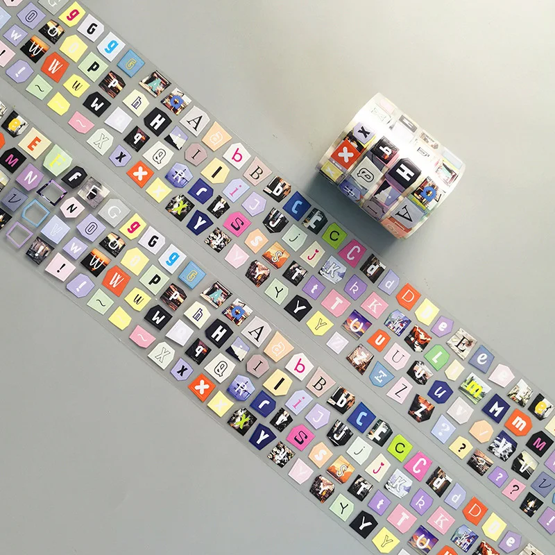 Mr. Paper 1 Roll Magazine Collage Washi Tape 200cm, English Letters Pre-cut Stickers for Journal Scrapbook Photo Album Dairy