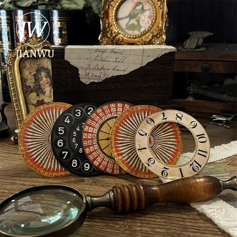 JIANWU Vintage Circular Circus Dial Hollow Landscape Collage Scrapbook Material Paper Creative DIY Junk Journal Stationery