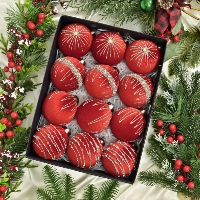 12pcs/set Velvet Christmas Ball Pendant Christmas Tree Decoration Ball Christmas Ball Gift Box 8CM 3.2INCH