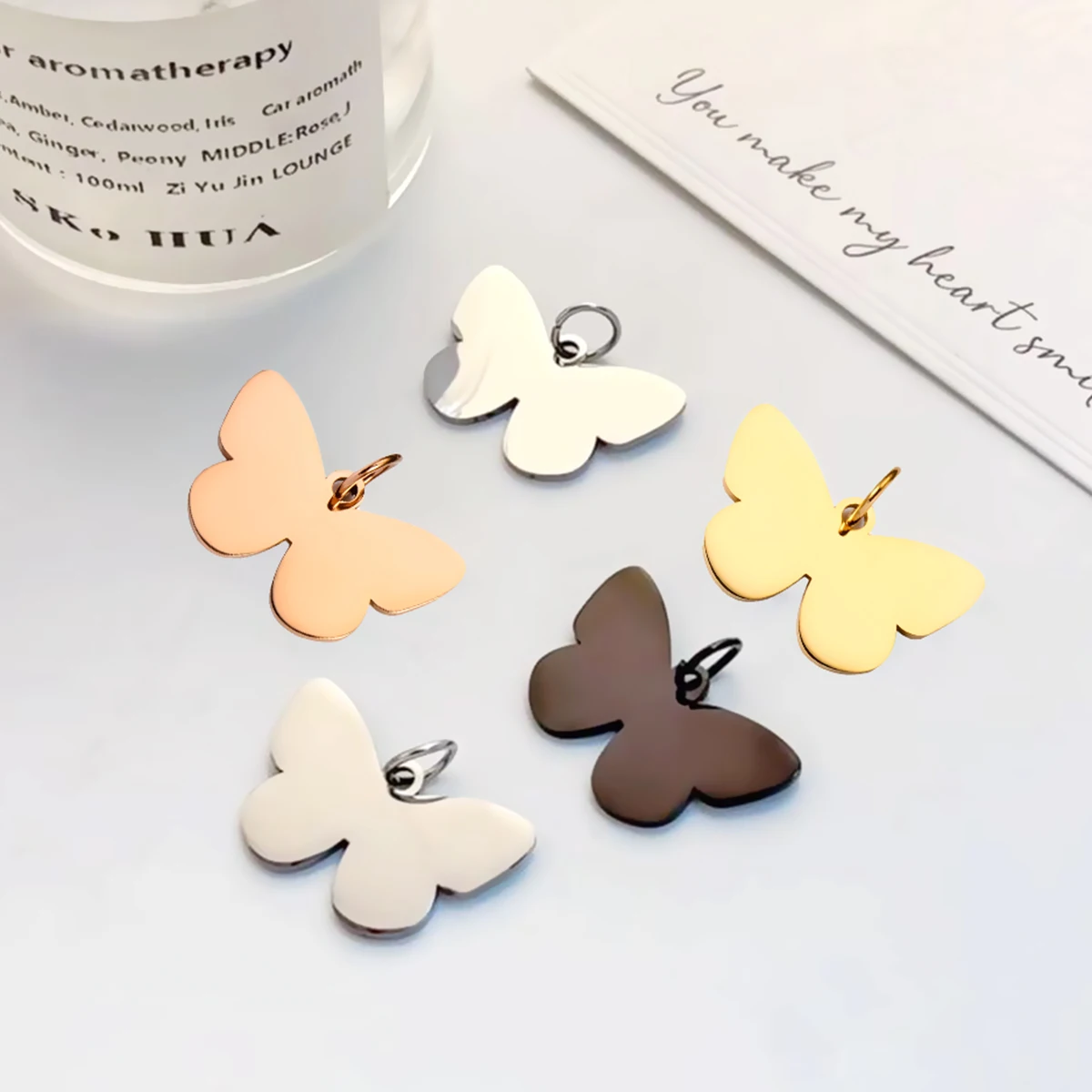 5pcs Mirror Polishing Stainless Steel Butterfly Charm Insect Pendant Blank ID Tags For Handmade DIY Keychain Necklace Gift