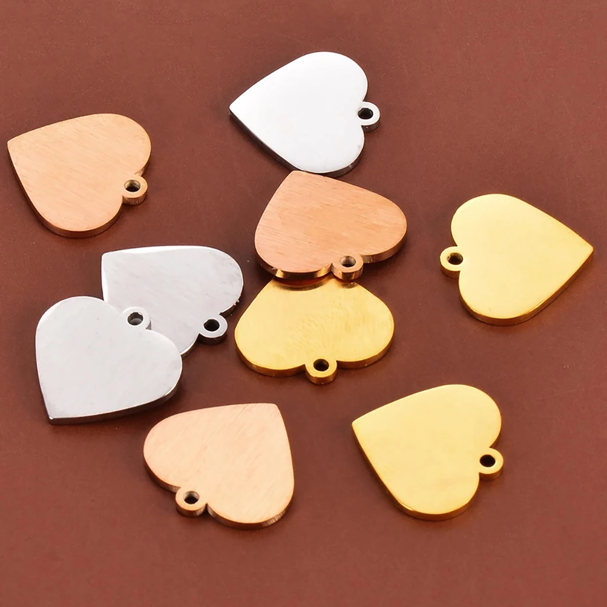 30Pcs One Side Mirror Polishing Stainless Steel Heart Love Pendant Accessories for DIY Jewelry Making Findings Wholesale