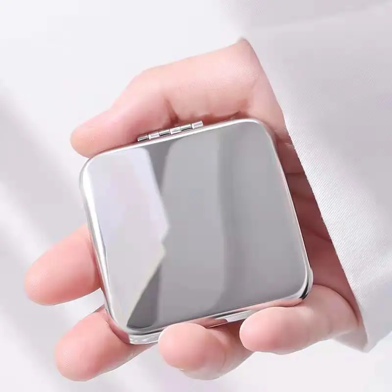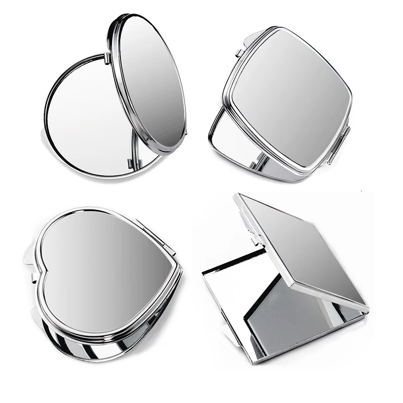 Wholesale Women's Makeup Mirror Heat Sublimation Blank Pocket Mirror Love Square Round Stainless Steel Makeup Gift Mirror