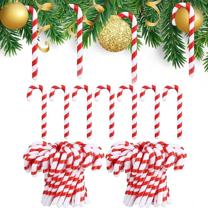 100/10Pcs Christmas Candy Cane Ornament Plastic Christmas Tree Hanging Decoration Twisted Crutch Candy Canes Indoor Party Favor