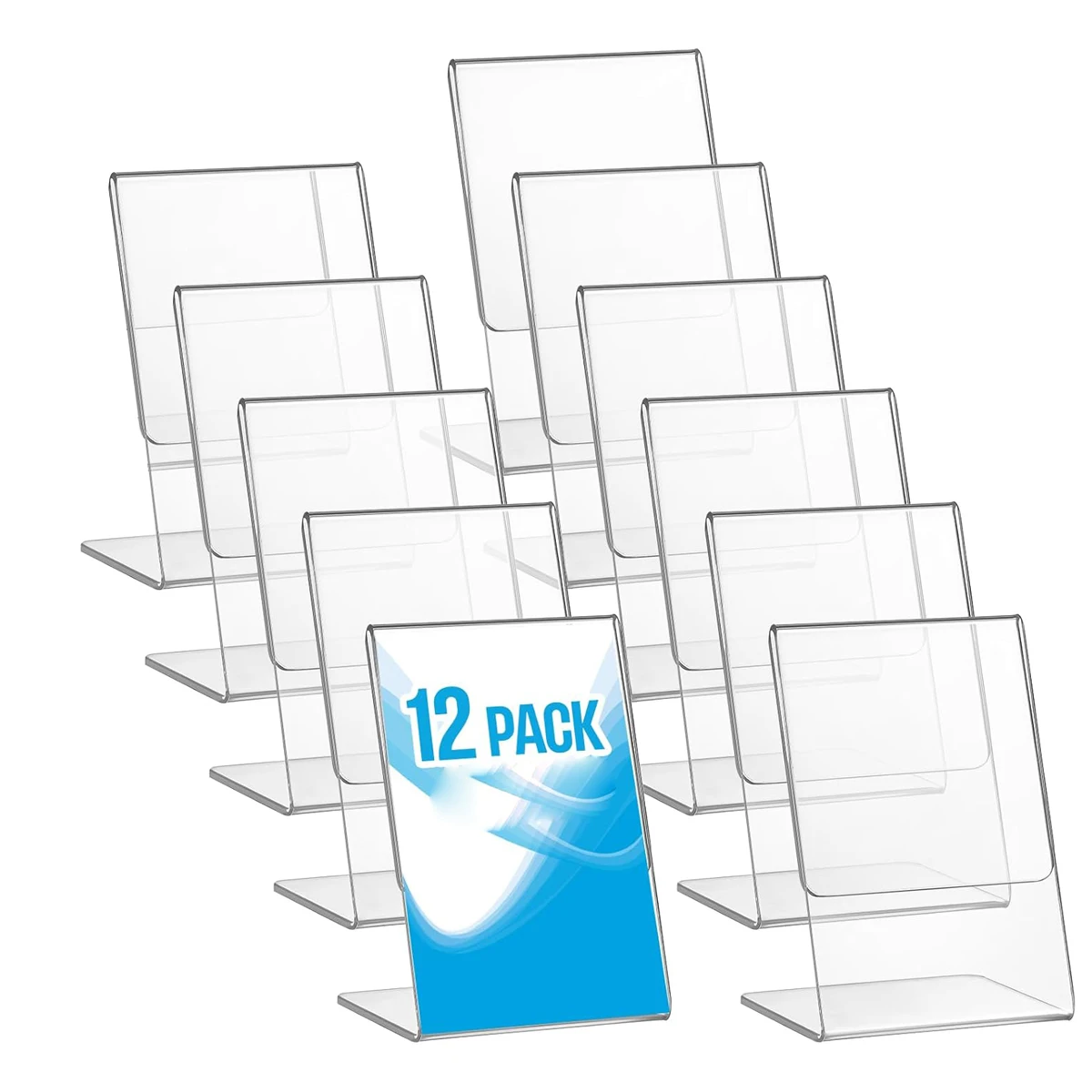 12pcs L-shaped acrylic photo frame tilted back transparent plastic desktop photo frame, clear acrylic stand for desktop display  Read more