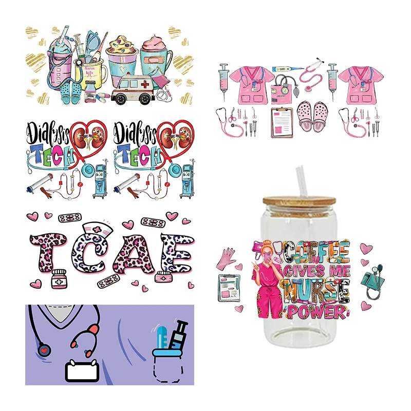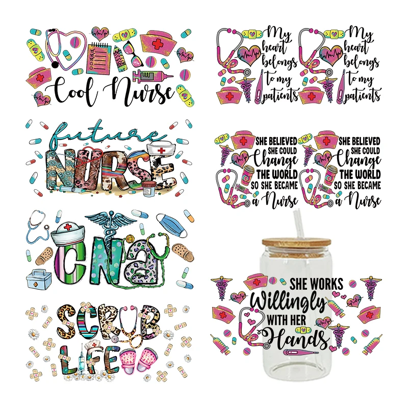 3D UV DTF Transfers Stickers 16oz Cup Wraps Nurse Doctor Health Printed For DIY Glass Ceramic Metal Leather Etc. D14017