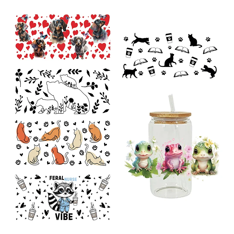 3D UV DTF Animal Dog Cat Frog Printed Transfers Stickers 16oz Cup Wraps For DIY Glass Ceramic Metal Leather Etc. D21226
