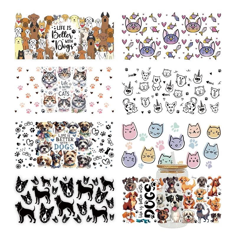 3D UV DTF Animal Dog Cat Printed Transfers Stickers 16oz Cup Wraps For DIY Glass Ceramic Metal Leather Etc. D26883