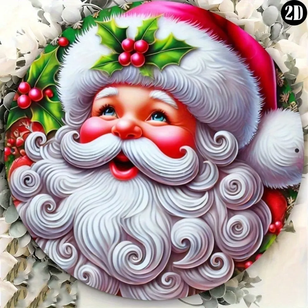 1pc Vintage Pink Santa Metal Sign - 7.87x7.87" Weather-Resistant Christmas Decor for Doors Walls, Easy-To-Hang Festive Holly