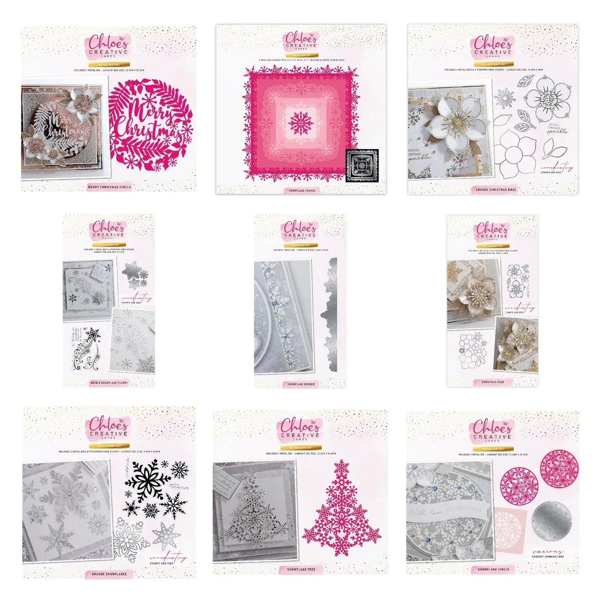2021 New Christmas Merry Circle Snowflake Circle Rose Grande Snowflakes White Reindeer Couple Metal Cutting Dies and Stamps Set