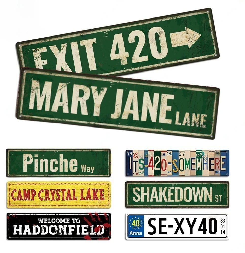 Street Sign Stoner 420 Accessories Plaque Metal Wall Art for Horror Movie Grunge Room Goat Decor Weed Gifts for Men