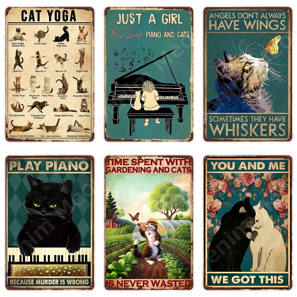 Vintage Black Cat Metal Sign, Cat Yoga Poster, Wall Decor for Home, Kitchen, Cafe, Bar, Before to Wipe Sign, Gift for Cat Lover