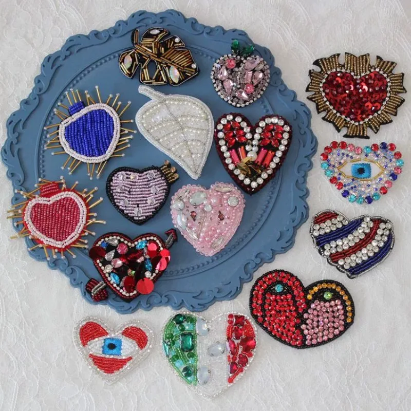 3D Handmade Rhinestone Beaded Heart Patches, Sew-on Crystal Patch, Beading Applique, Cute Patch, Love Medals, 1 Pc Lot  Read more