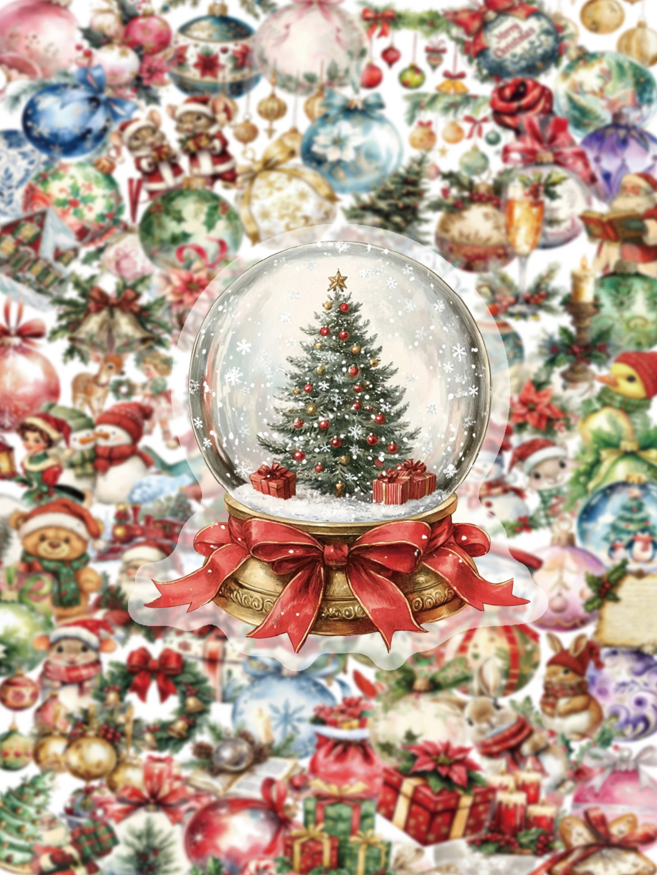 100 Classic Cartoon Retro Christmas PET Stickers Dreamy Crystal Balls Colorful Balls Wreath Santa Claus Beautiful Gift Sticker