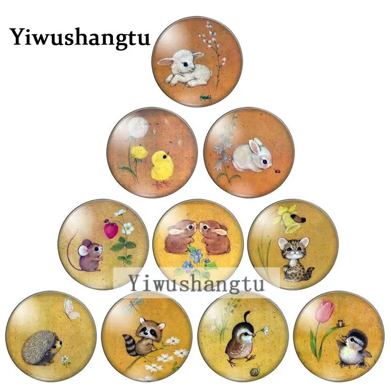 Cartoon animal Flowers grass figure 12mm/18mm/20mm/25mm Round photo glass cabochon demo flat back Making findings ZB0543