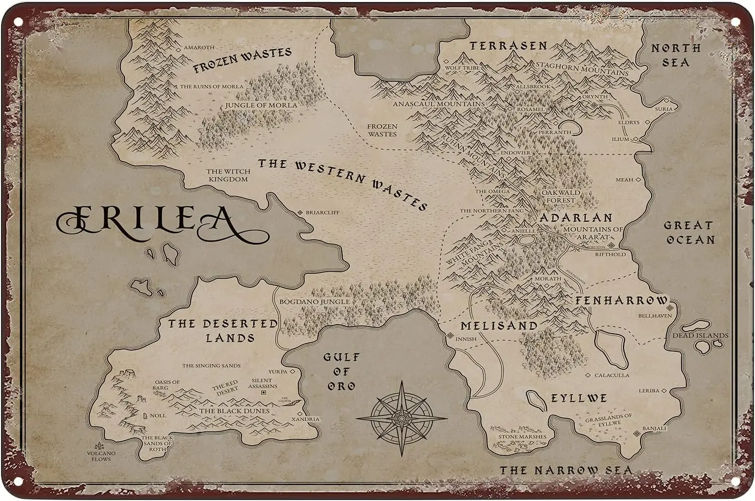 Vintage Metal Signs - Throne of Glass Erilea Map Tin Sign Poster Wall Art Decor Plaque for Home Bar Pub Club Cafe 8x12 inch