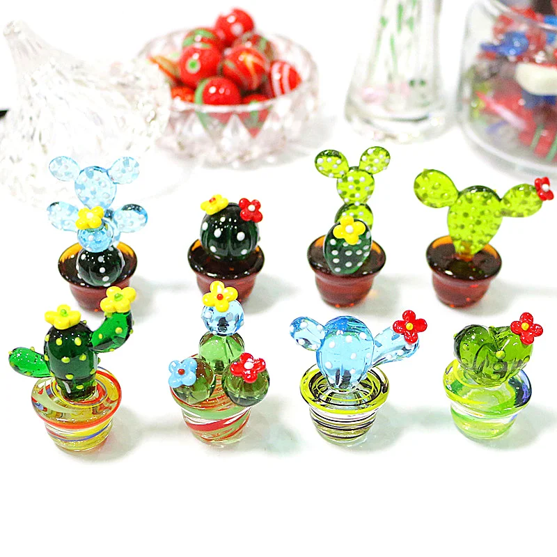 Handmade Murano Glass Cactus Figurines Ornaments Desktop Craft Adornment Creative Colorful Cute Miniature Plant For Home Decor  Read more