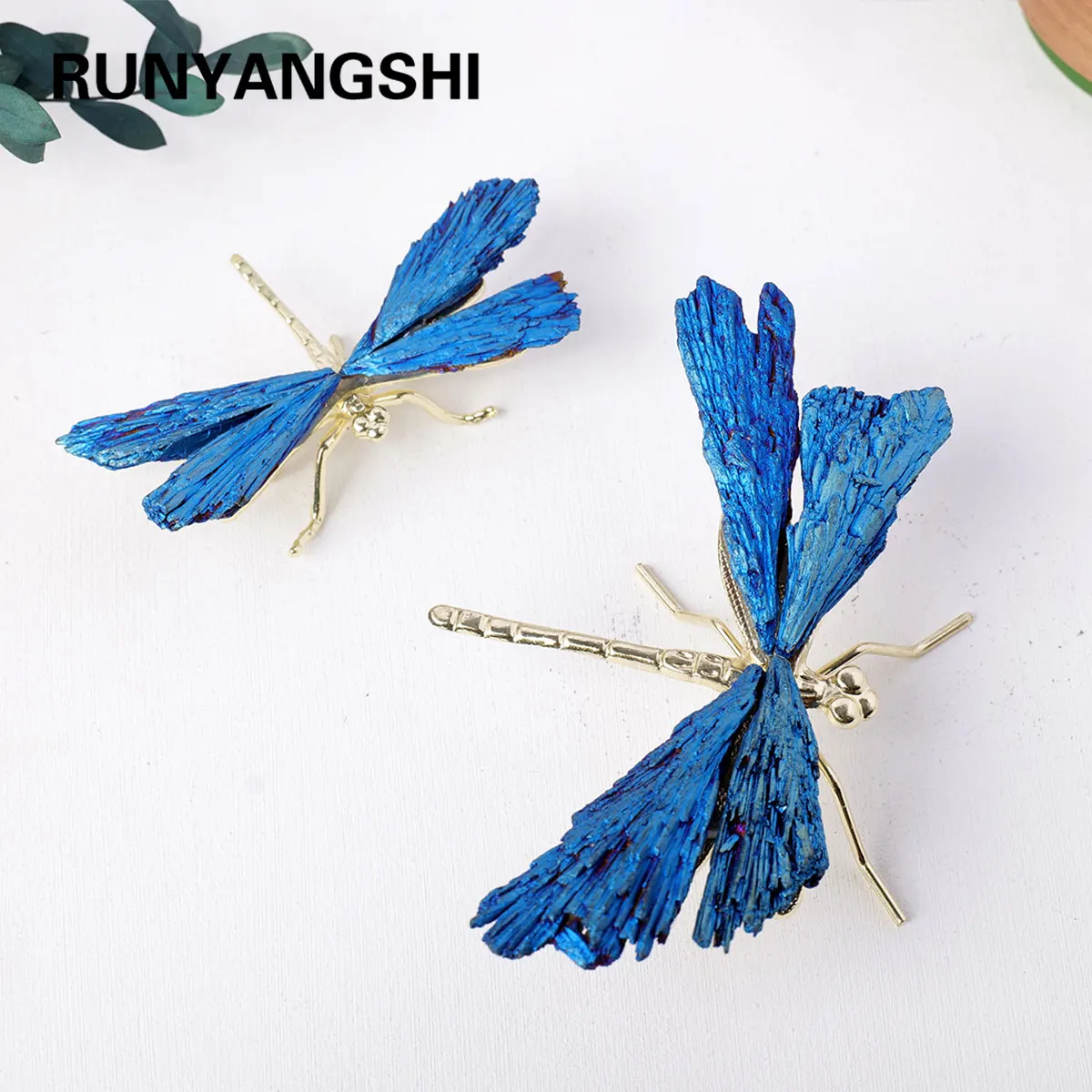 1pc Natural Crystal Stone Black Tourmaline Aura Blue Flame Feather DIY Dragonfly Animal Decoration Wholesale