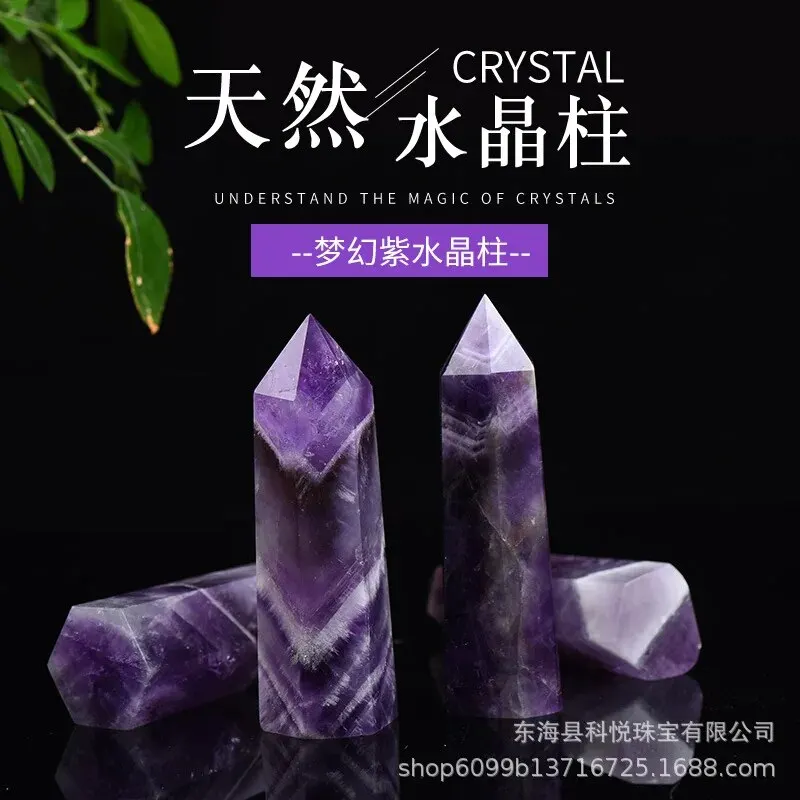 Factory Direct Supply Natural Dream Purple Crystal Column Single Pointed Six-edge Crystal Column Original Stone Polishing Crafts