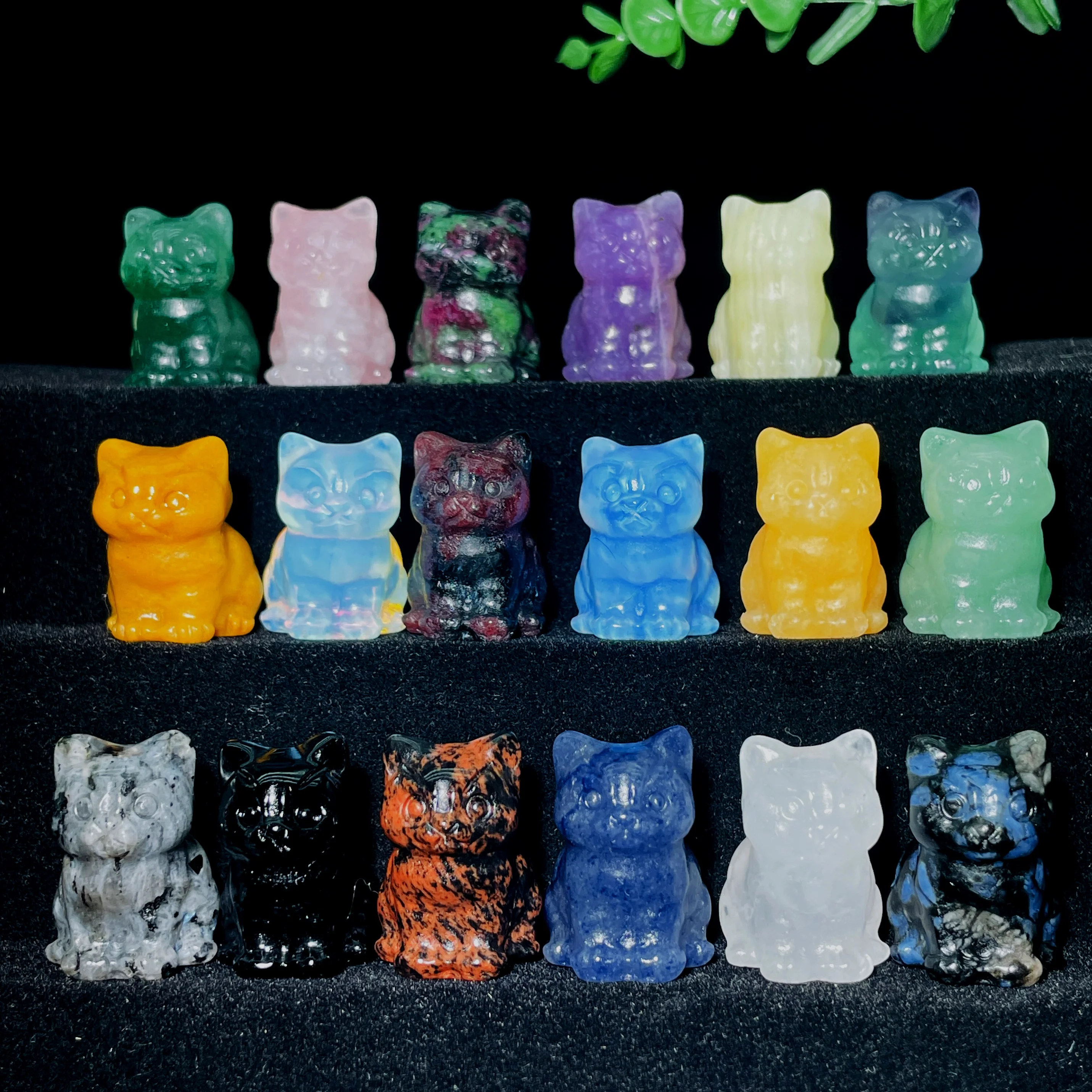 1PC Cute Jauntily Sitting Cat Natural Crystal Kitty Carving Gift for Her Souvenir Delightful Home Decor Reiki Stone Ornaments