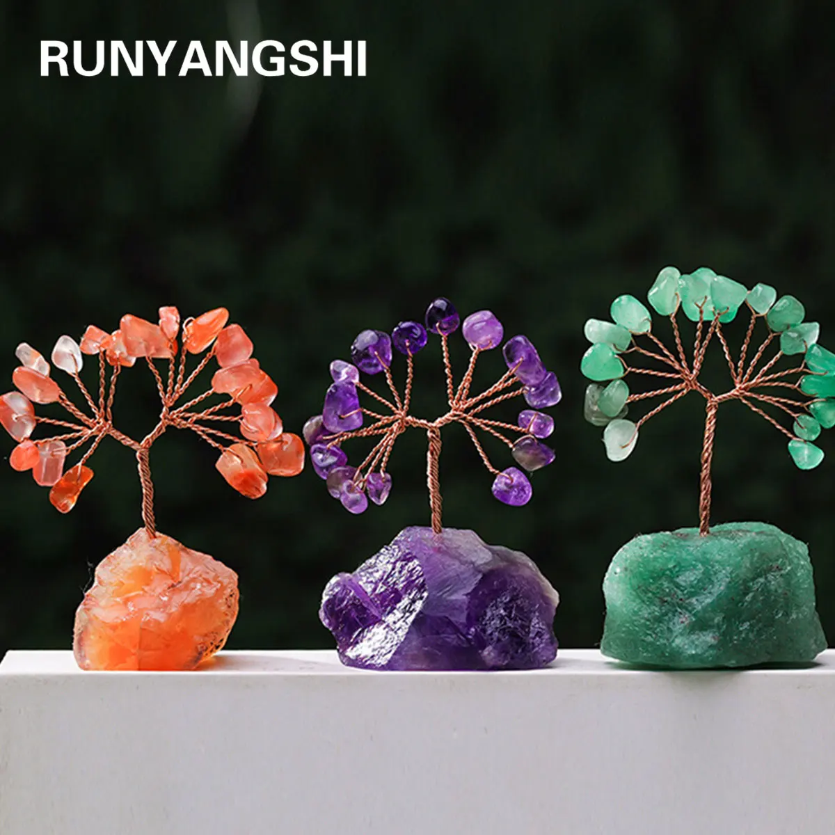 1PC Natural Gemstone Crystal Lucky Tree irregular Raw Stone Base Home Office Desk Living Room Crystal Decor