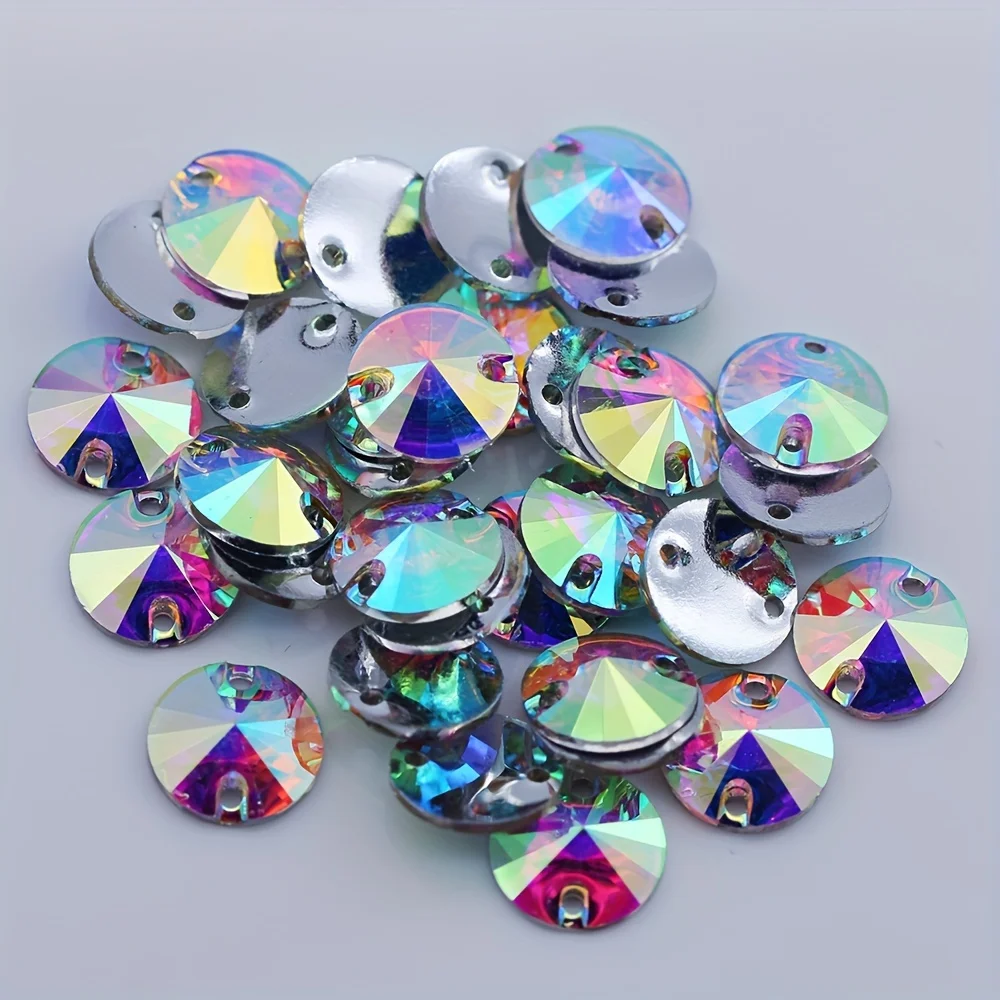 100pcs/Lot, 14mm Crystal AB / Clear AB Flat Back #3200 Rivoli Round Resin Sew On Stones