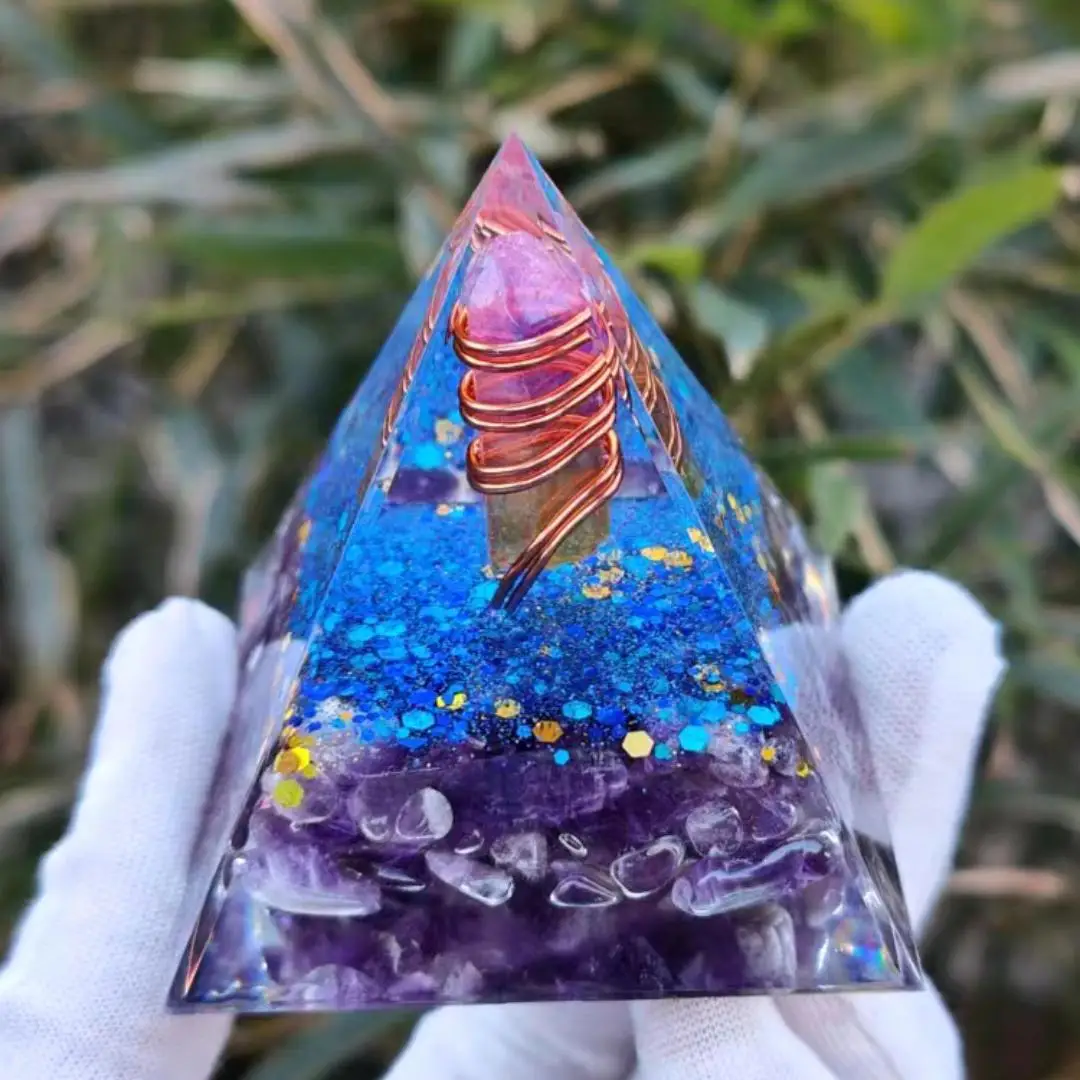 1pc Pyramid Ornament Statue Gravel Resin, Handcrafted crystal pillar with colorful moonlight , Crystal Organite Pyramid  Read more