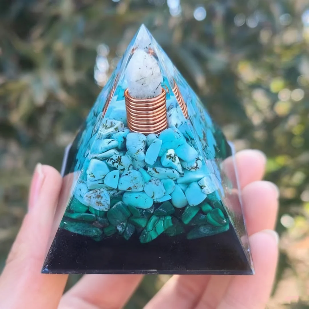 1pc Pyramid Crystals , Pyramid Ornament Turquoise Statue Gravel Resin, Home Desktop Handmade Ornaments, Crystal Organite Pyramid  Read more
