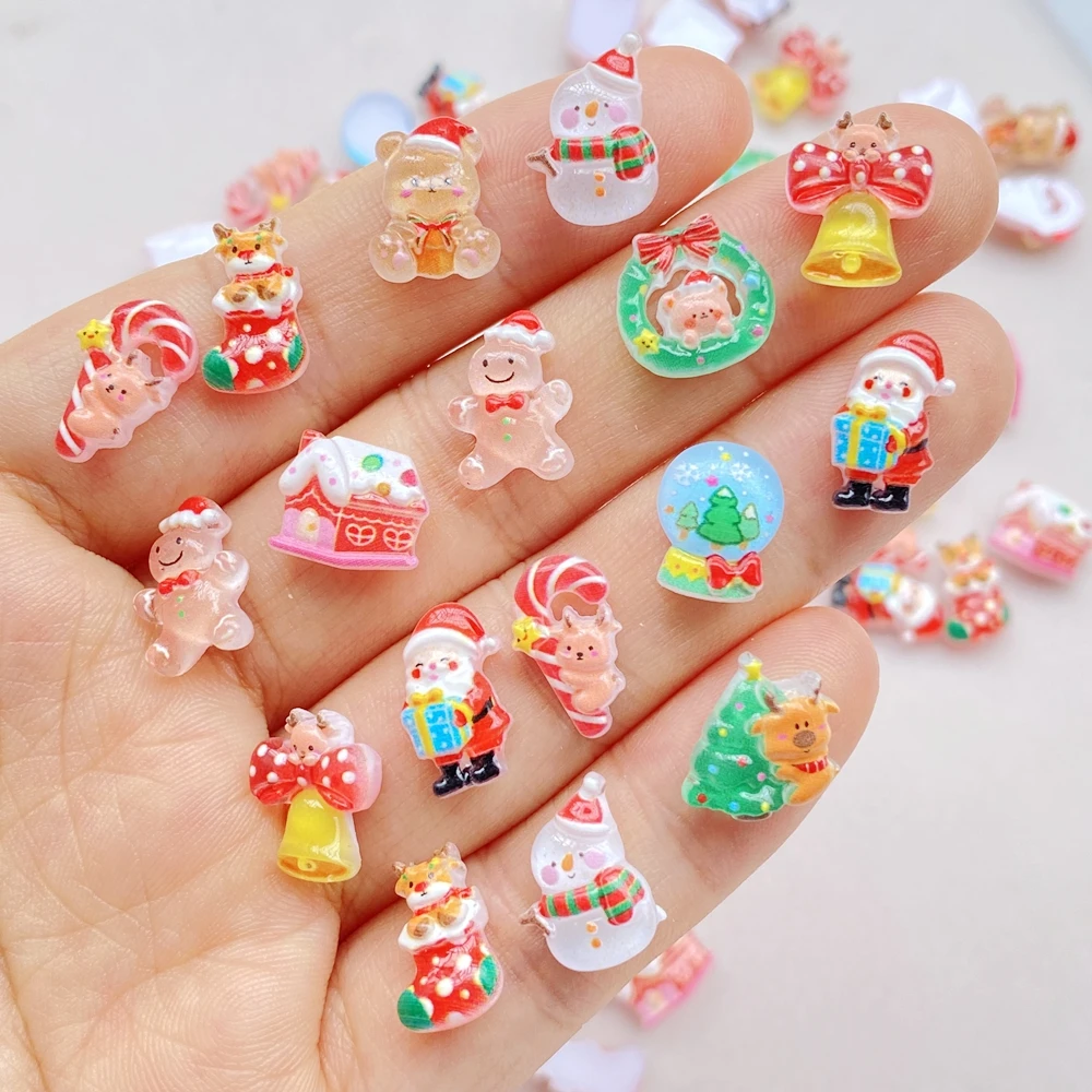 50pcs Resin Mini Cartoon Christmas Snowman Tree Santa Claus Deer Star Flatback Rhinestone Figurine Nail Art DIY Scrapbook Craft