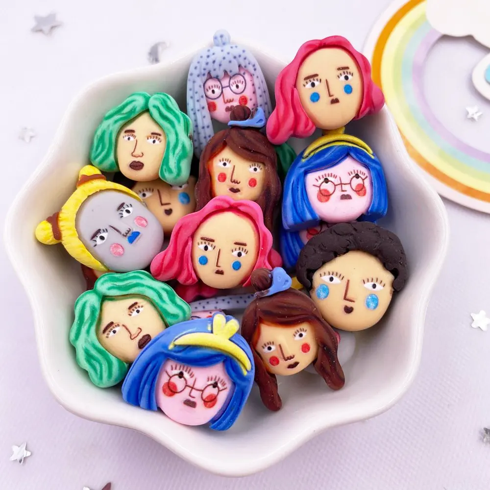 10PCS Resin Kawaii Colorful Mini Various Portrait Boy Girl Scrapbook Flatback 3D Figurine DIY Headdress Home Decor Craft