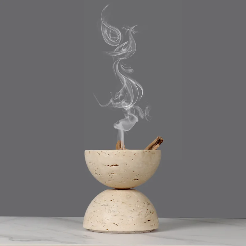 Natural Limestone Beige Marble Incense Burner, 9-hole Sphere, Arabic Wooden Plate Container, Dining Table Incense Rack  Read more
