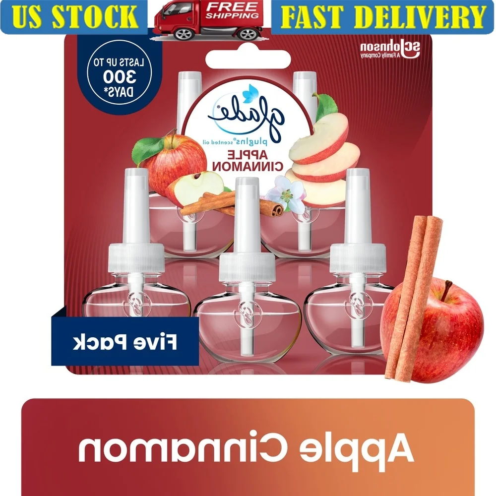 Apple Cinnamon PlugIns Scented Oil Refills 5 Pack Air Freshener Essential Oil Infused Wall Plug In Home Fragrance 60 Days