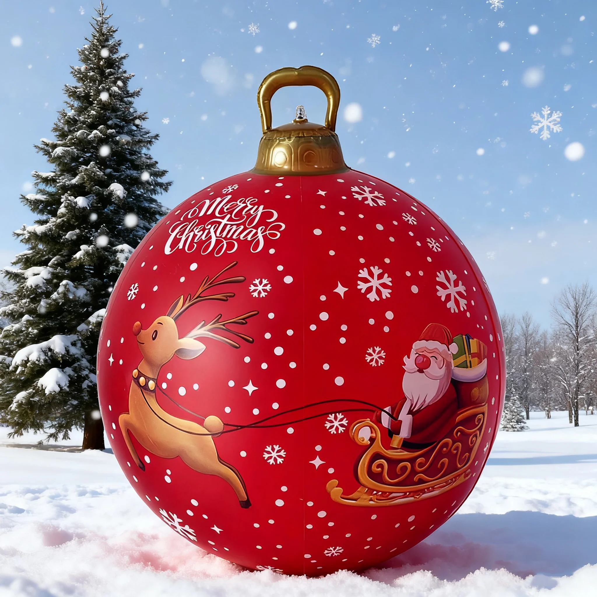 Christmas Inflatable Ball Decorations 60cm Giant Christmas Inflatable Ball Decorations with Snowflakes, Red Merry Christmas Pvc Decorative Balls Suitable for Holiday Outdoor Tree, Courtyard, Lawn,