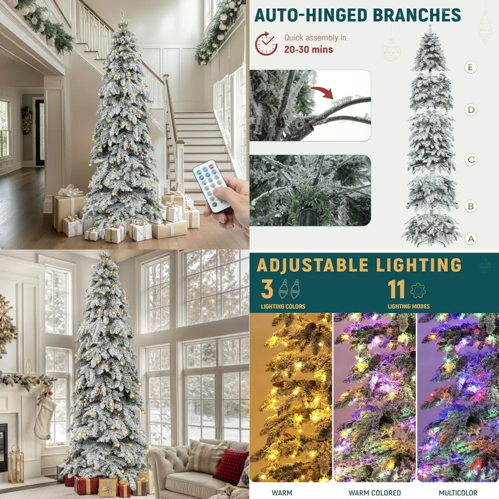 Eleven-Foot Flocked Drooping Pencil Spruce Christmas Tree with Pine Cones and Natural Layered Spruce Look  Read more