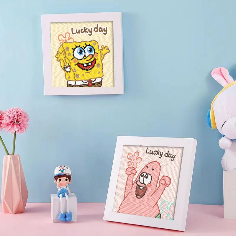 MINISO Cartoon Crystal Diamond Paste Painting Handmade DIY Frame Decoration Painting Kawaii SpongeBob SquarePants Birthday Gift  Read more