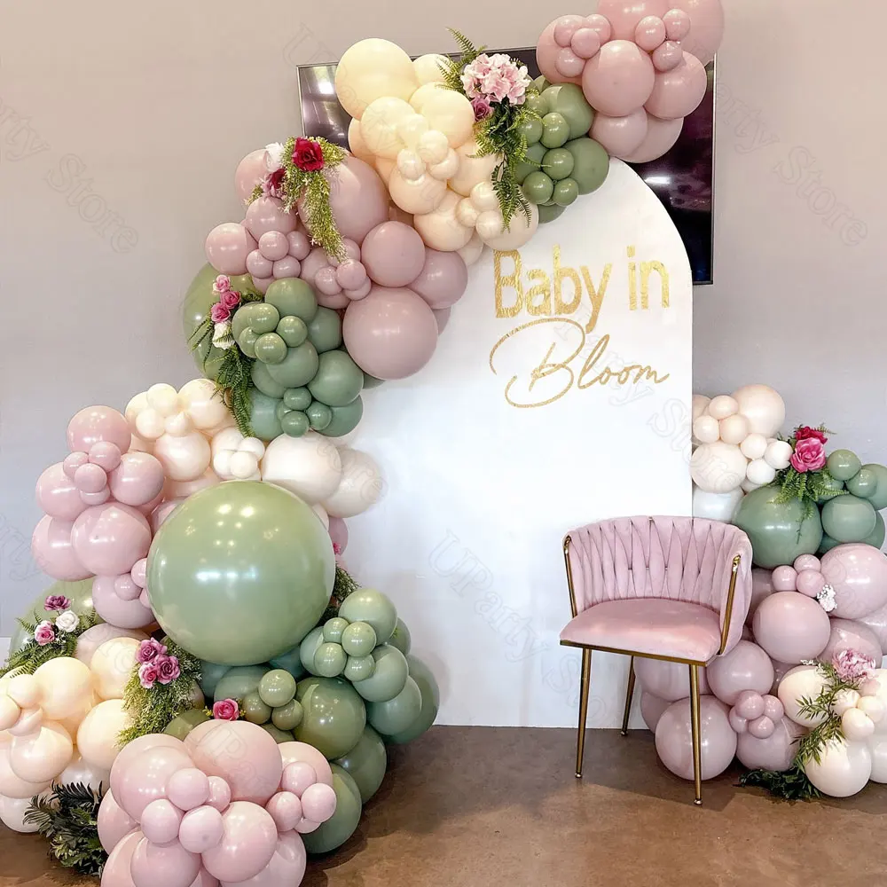 127pcs Pink Sage Green Balloons Garland Neutral Sand White Dusty Pink Retro Green Balloons Arch for Baby Shower Birthday Decor