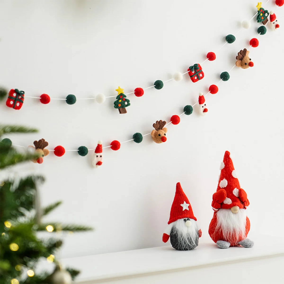 1pc Christmas Felt Pom Pom Garland- Santa, Reindeer, Tree & Gift Box Decorations, Festive Banner for Home Wall & Xmas Tree Decor