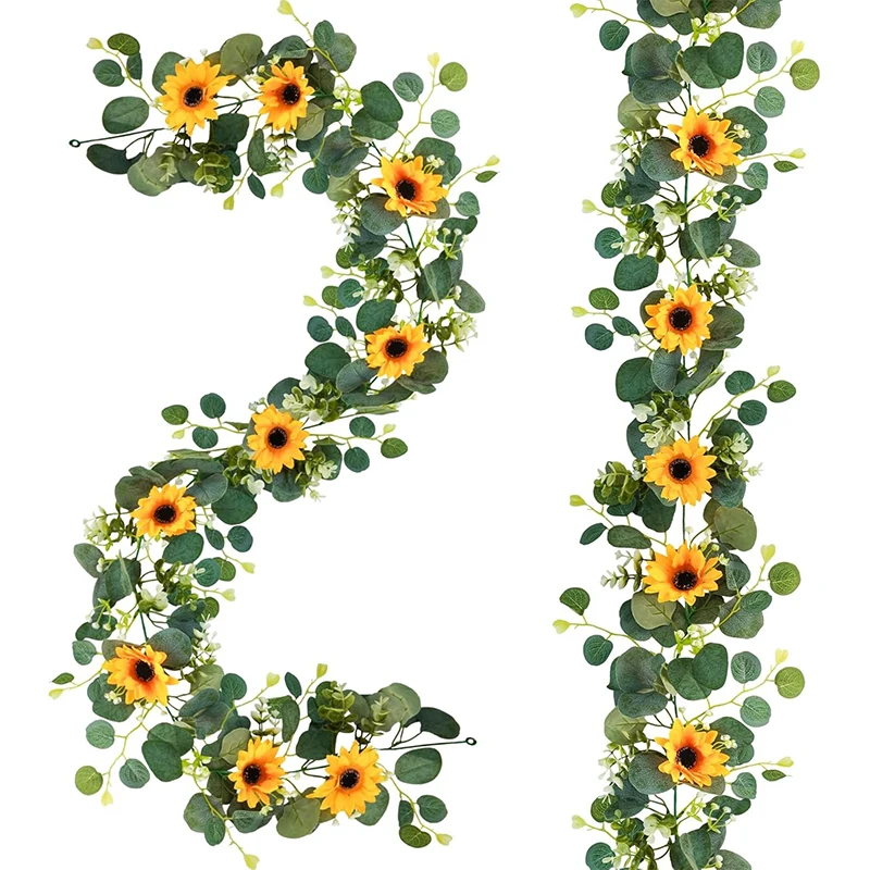 170CM Artificial Sunflower Garland Fake Silk Sunflower Hanging Garland Vine Birthday Party Wedding Garden Home Decoration