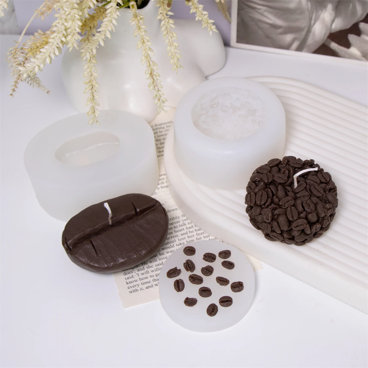 3D Coffee Bean Resin Silicone Candle Mold Pendant Mold DIY Coffee Bean Pillar Scented Candle Making Mold Creative Gift Decor