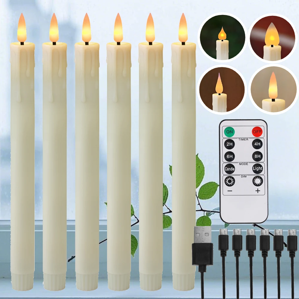 Rechargeable Flameless LED Taper Candles with Timer Remote & USB Charging Cable Flickering Dripping Wax Window Tall Candlesticks