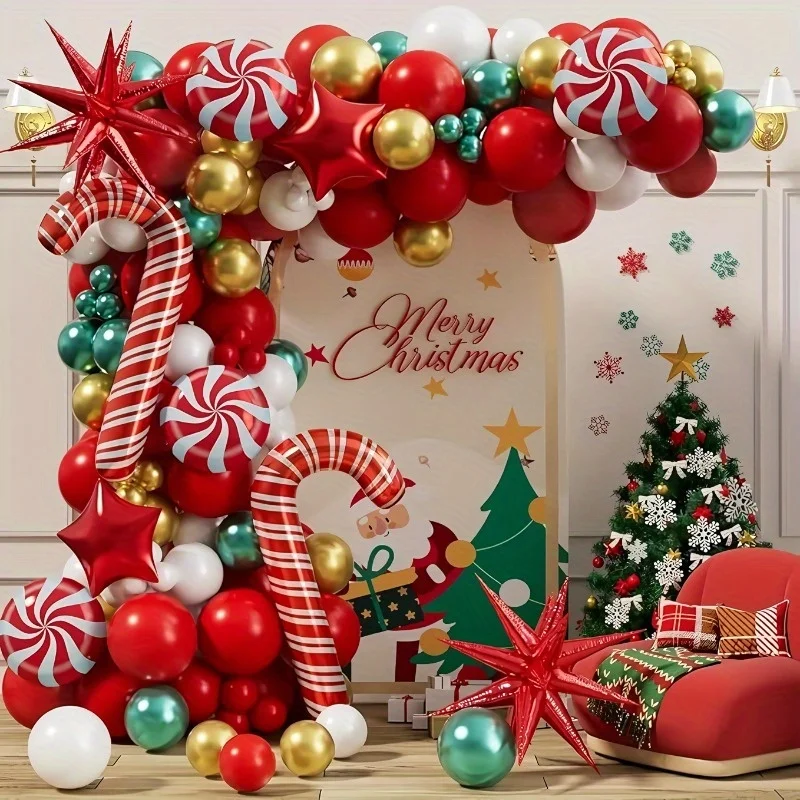 112-Piece Christmas Balloon Wreath Arch Set with Candy Canes and Star Foil Balloons Suitable for Christmas and Birthday Party