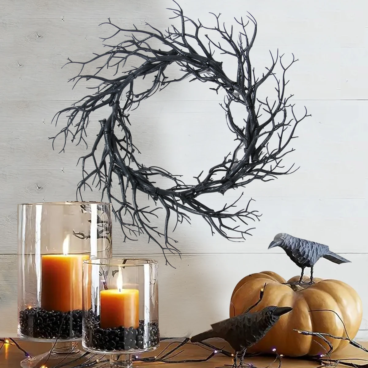 Black Halloween Wreath Artificial Branches Door Garland Wreath Halloween Decorations Scary Home Indoor Outdoor Party Decor
