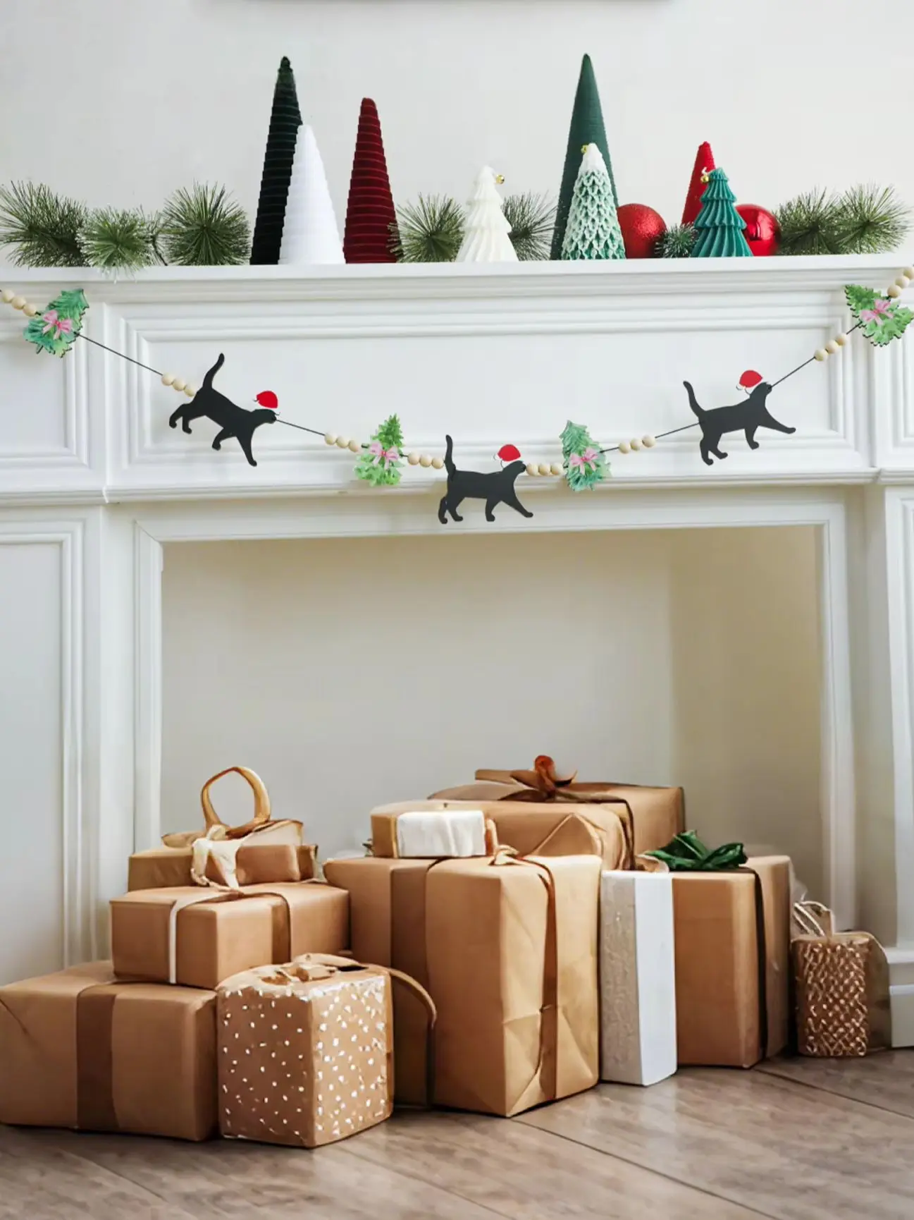 Wooden Christmas Cat Garland with Santa Hat & Tree Ornaments, Beaded String Hanging Banner, Festive Fireplace & Home Party Decor  Read more