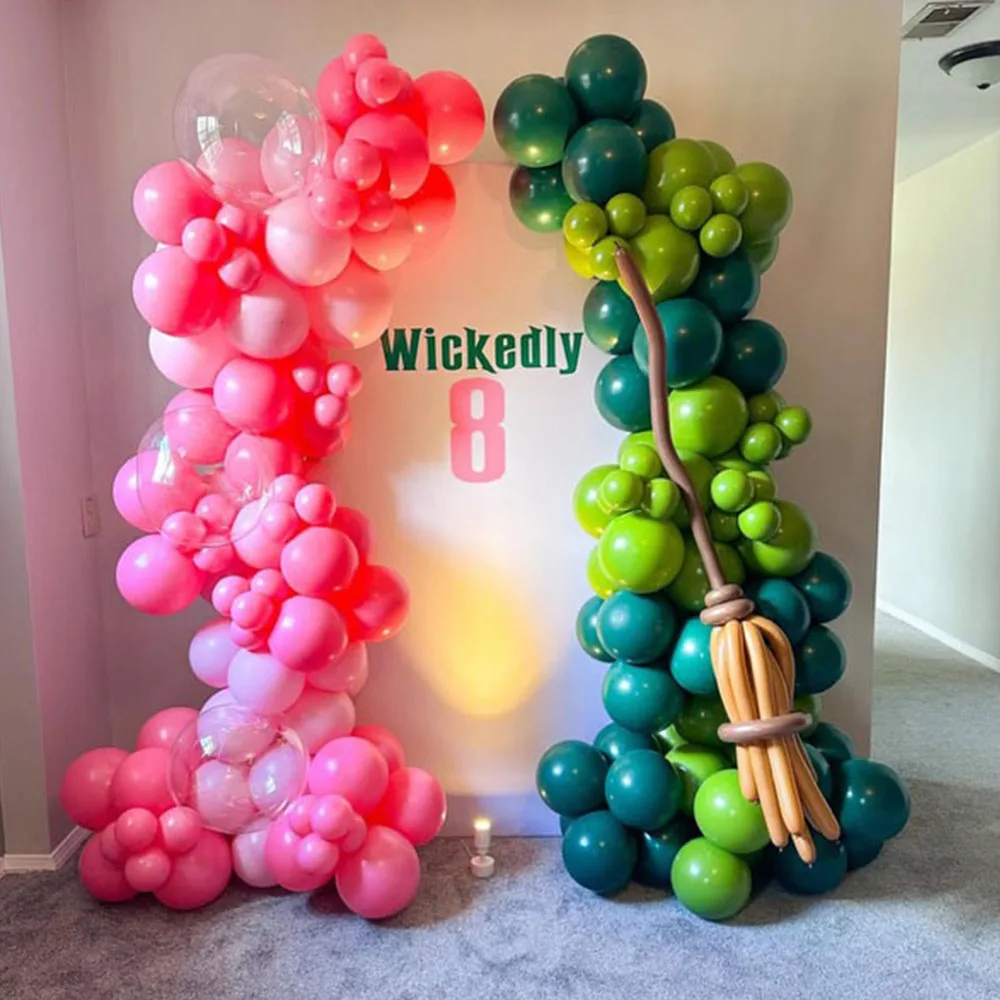139Pcs Green Pink Balloon Garland Arch Kit Witch Theme Birthday Party Decor for Musical Theatre Witch Themed Birthday Party Deco