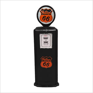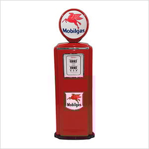 Designed after the classic gas pumps of the 1940s and ’50s, it features gleaming metal accents, built-in lighting, and a glowing globe for a bold, nostalgic centerpiece.