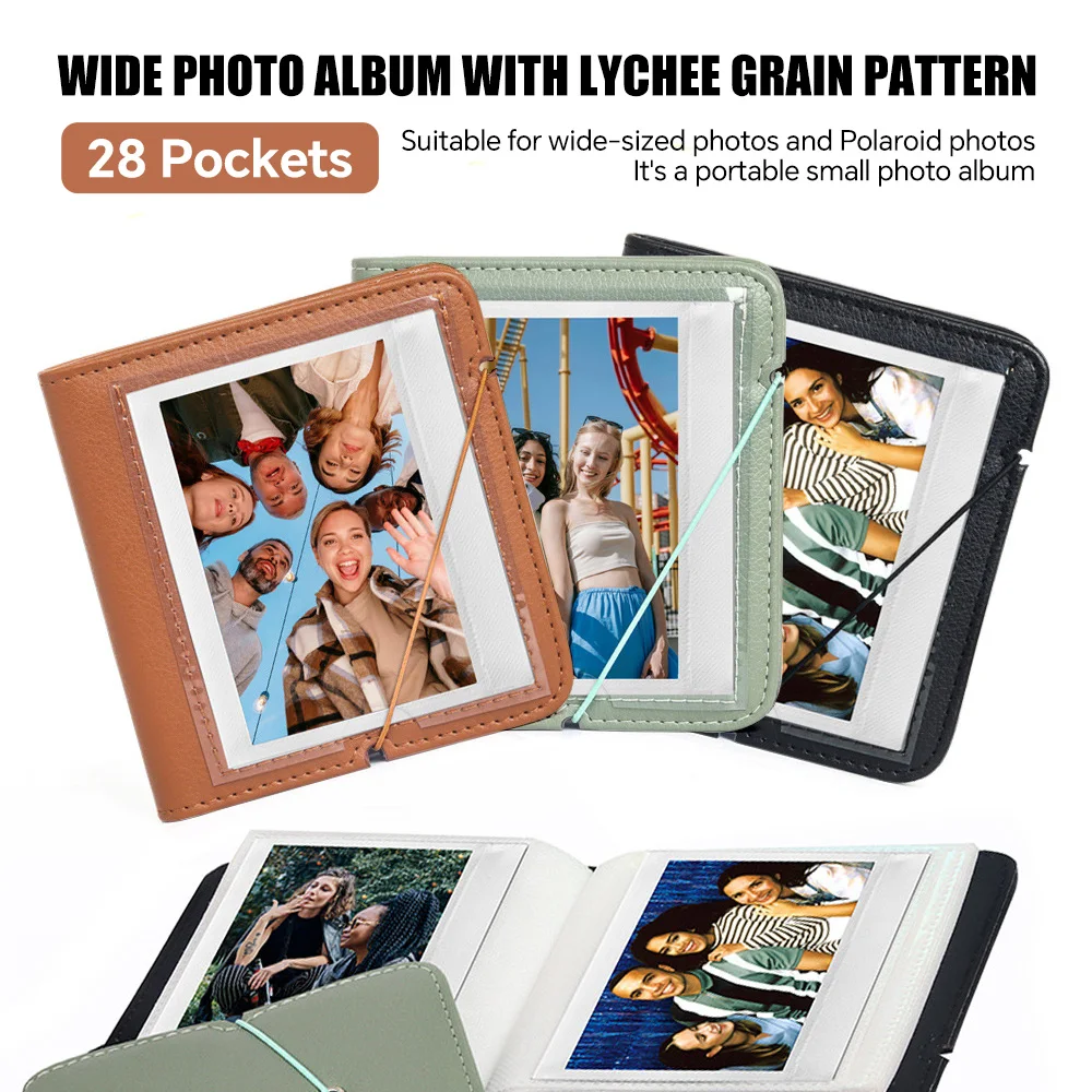 Portable PU Leather Photo Album, 28 Pockets, Compatible with Polaroid iType/600/SX70 & Fujifilm Instax Wide 210/300/400,