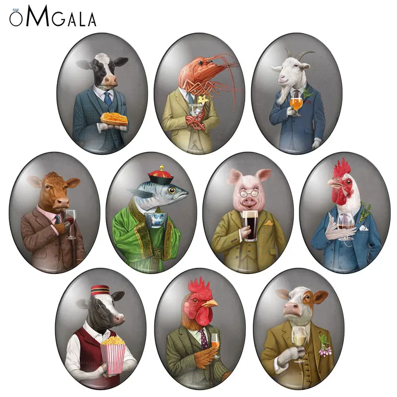 Cute Cow Fish Sheep Pig Amimals with Suit 10pcs 13x18mm/18x25mm/30x40mm Oval photo glass cabochon demo flat back Making findings